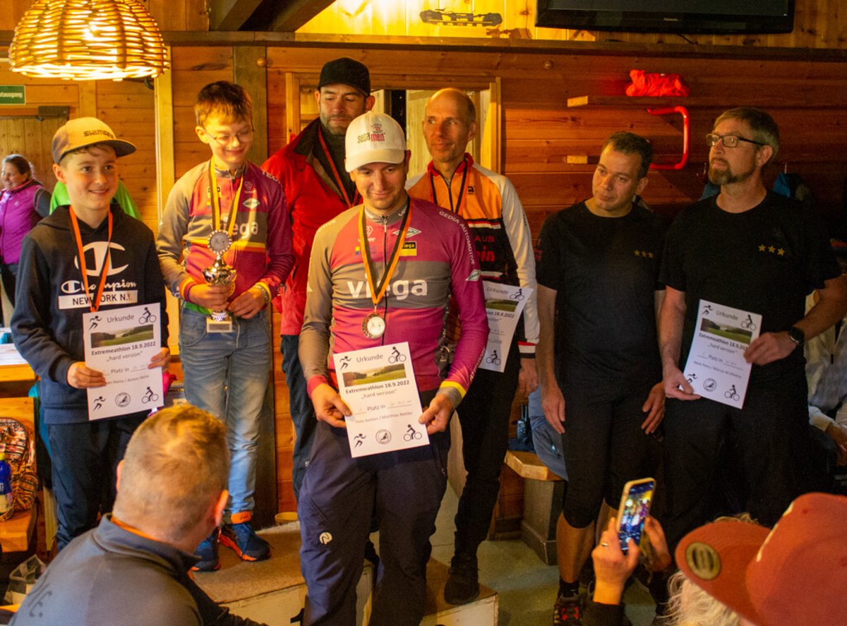 In der Extreme Version gab es den erwarteten Favoritensieg durch das Team um den Hyrox-Athleten Tobias Lautwein und Elite-Radfahrer Frank Lütters. Tobias übergab nach seiner ersten Laufrunde als Führender auf Frank Lütters, der den Vorsprung ausbaute. Schnell wurde klar, dass diesen Beiden niemand gefährlich werden konnte, auch wenn im Starterfeld noch einige Hochkaräter dabei waren. Ein sehr starkes und ausgeglichenes Team bildeten die Zweitplatzierten Patrick Brandenburger und Marcel Bernhardt. Auf der Laufstrecke beeindruckte Jan Philipp Weller, der immer wieder Plätze gut machte. Zusammen mit seinem Partner Till Hartmann (beide Ski Team Sauerland) landete er auf Platz drei. Auf den vierten Rang kamen Tom-Luca Krumm mit Biker Nils Richter. Nils fuhr in den ersten Runden immer wieder auf einen Podestplatz vor. In der letzten Runde war dann aber der Abstand zu groß, um die Lücke vollends zu schließen.