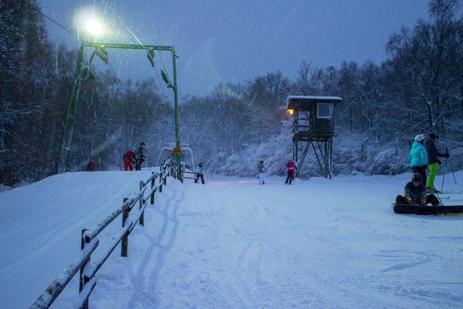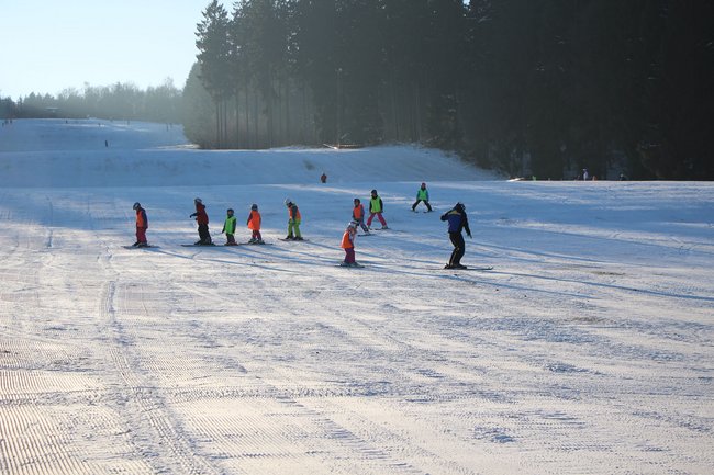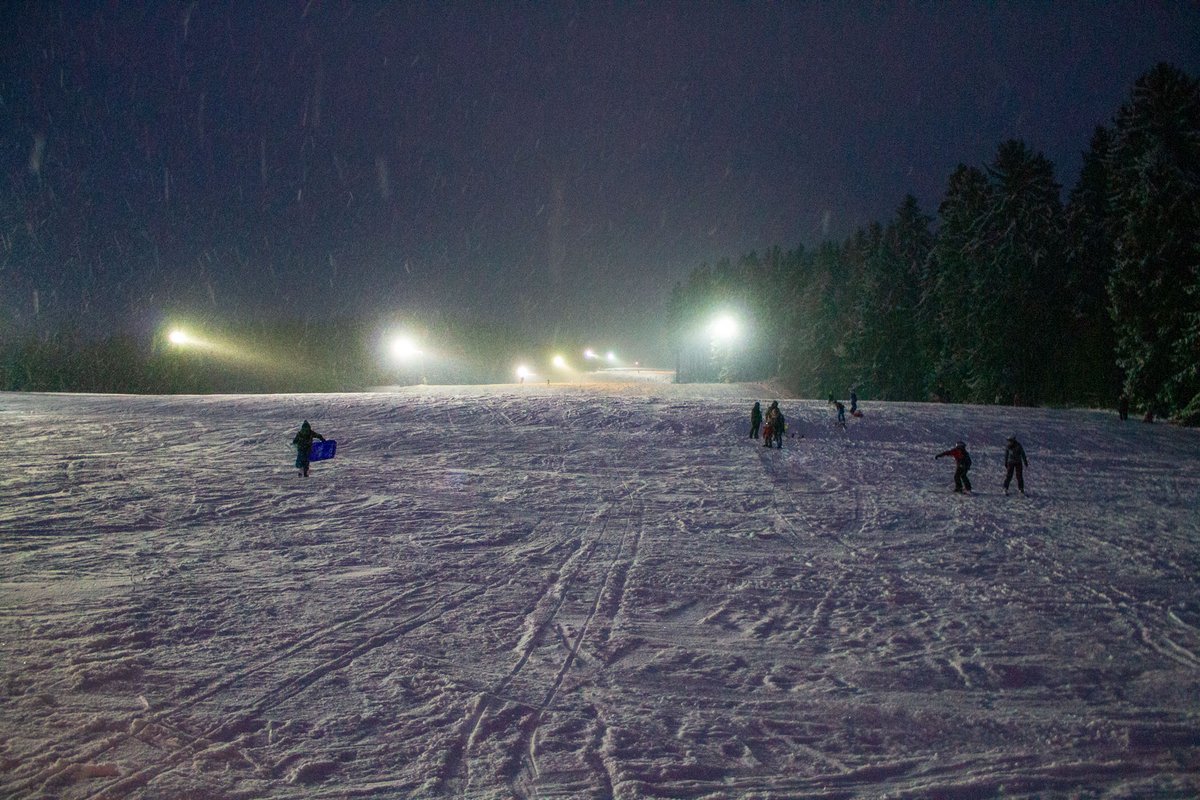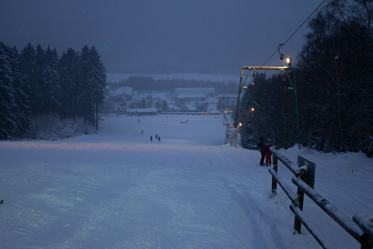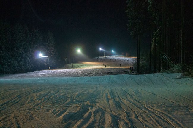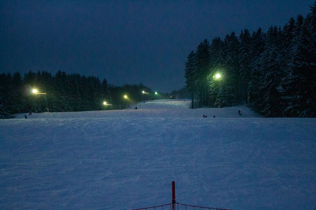 Die in 2017 auf LED umgerüstete Flutlichtanlage erleuchtet bei Dunkelheit das gesamte Areal, sodass auch in den Abendstunden die Möglichkeit zum Skifahren besteht.
